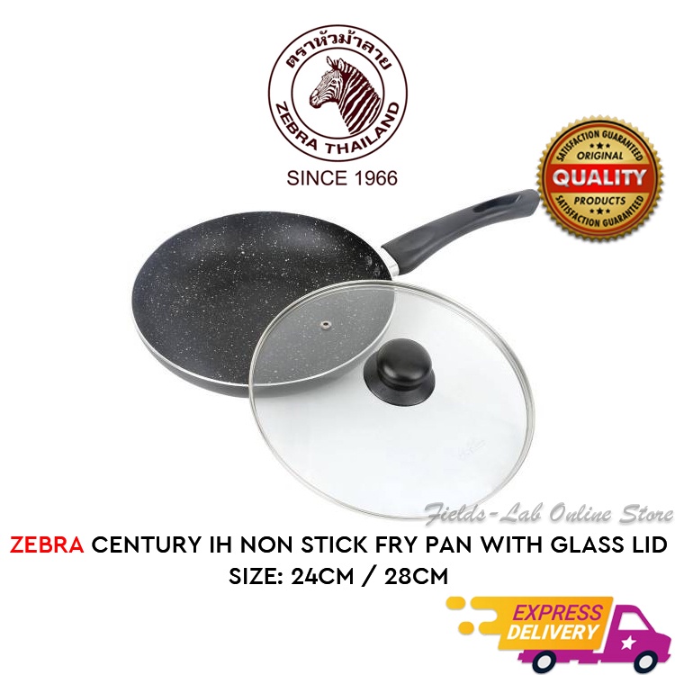 100 Original Zebra Wisdom Ih Non Stick Fry Pan With Glass Lid 24cm 28cm Shopee Malaysia