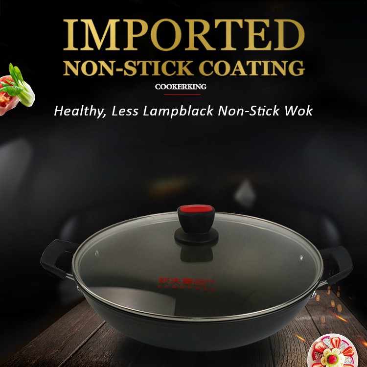 Aluminum Alloy Non Stick Wok 38cm With Glass Lid Smokeless Frying Pan Shopee Singapore